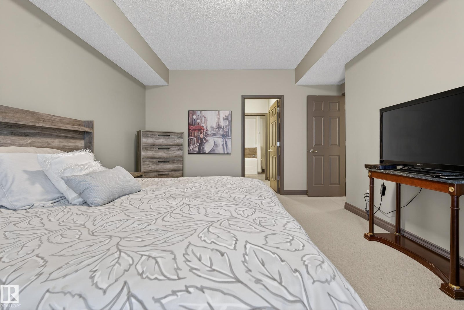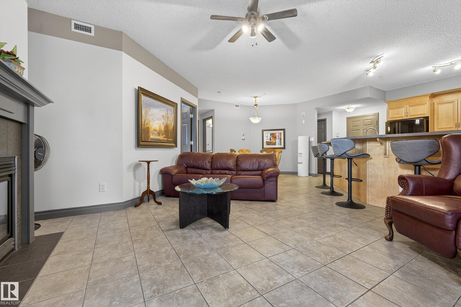 Welcome to this well-designed main floor condo located in the desirable Cloverdale River Valley area. Step into a welcoming foyer that opens into a bright and spacious living room featuring a cozy fireplace and large windows that fill the space with natural light. Enjoy easy access to your private balcony, perfect for morning coffee or evening relaxation. The open-concept layout flows into a dedicated dining area and a functional kitchen offering ample cabinetry, great counter space, and a pantry, ideal for both everyday living and entertaining. Down the hall, you’ll find a generous secondary bedroom, a full bathroom, and convenient in-suite laundry. The spacious primary bedroom features a walk-in closet and a private ensuite, creating a comfortable and relaxing retreat. Located just minutes from downtown, river valley trails, parks, and local amenities, this home offers comfort, functionality, and an unbeatable central location.