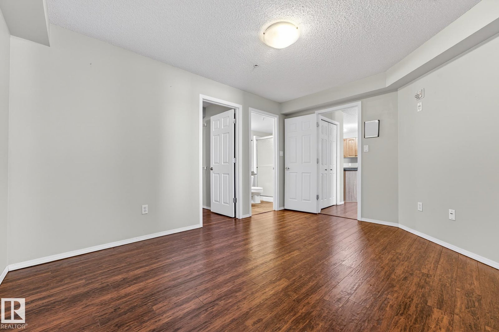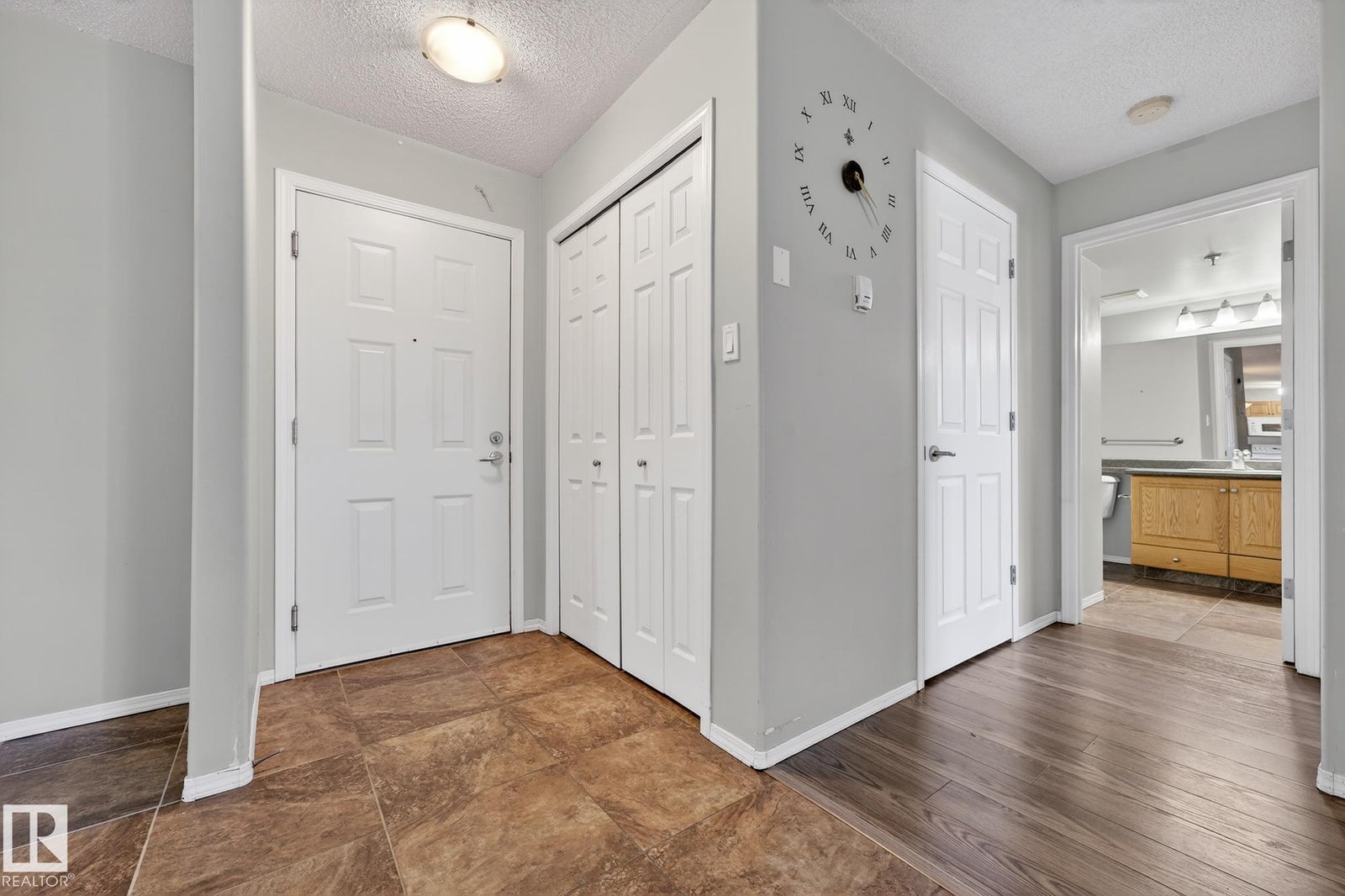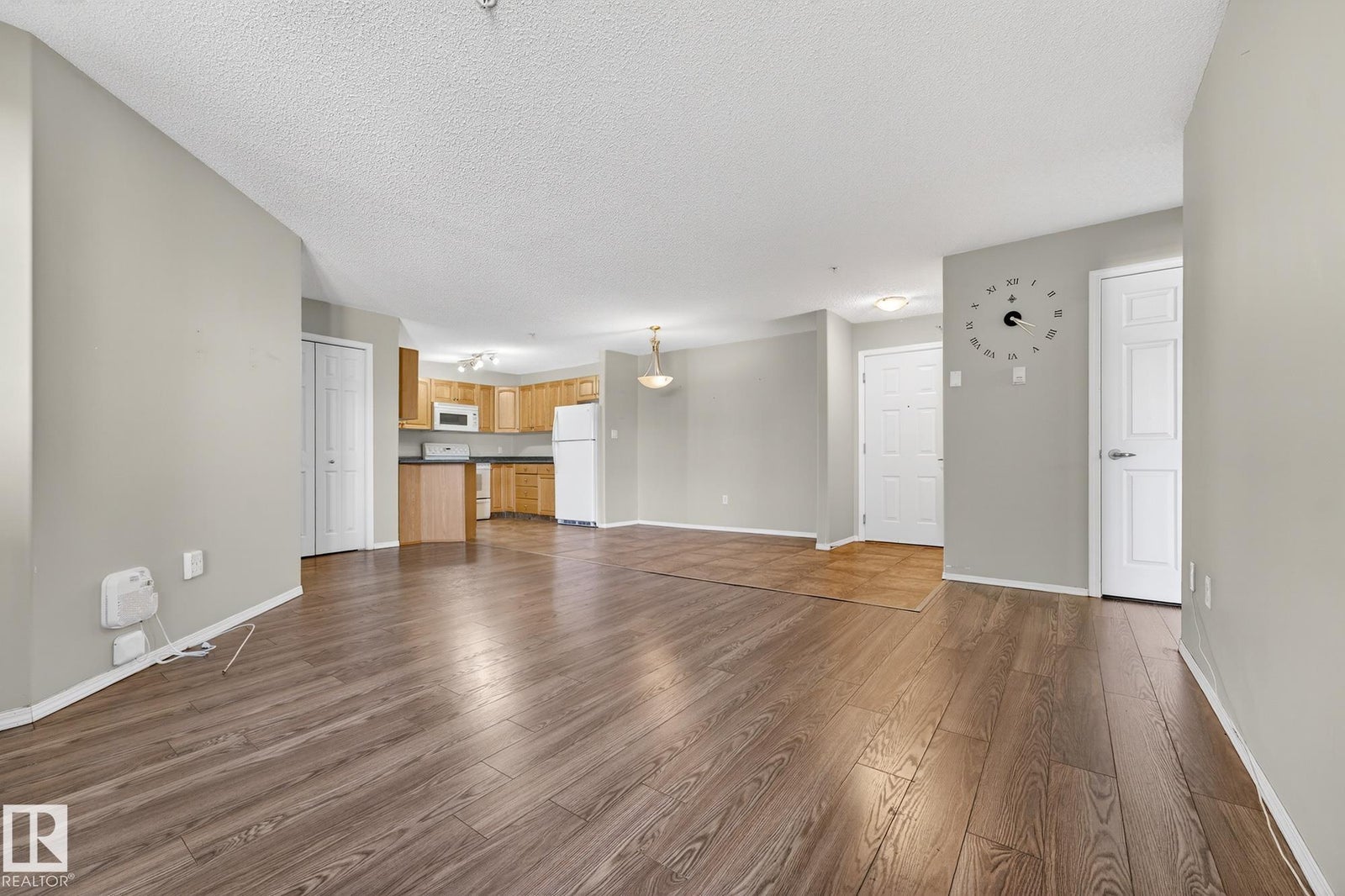 Welcome to this well-designed main floor condo offering a bright and functional layout in a desirable 18+ building. As you step inside, you are welcomed by a spacious foyer that opens into a generous living area, ideal for both everyday living and entertaining, with large windows allowing natural light to pour in. The adjoining dining space flows effortlessly into the kitchen, creating a seamless and inviting atmosphere for hosting or relaxing at home. Down the hall, you will find convenient in-suite laundry, a full bathroom, and a well-sized secondary bedroom that is perfect for guests or a home office. The primary retreat offers a comfortable escape with a walk-in closet and a private ensuite, giving you both space and privacy. This unit is complete with the rare bonus of 3 parking stalls, including one underground and two surface stalls, providing unmatched convenience for both residents and visitors. A fantastic opportunity to enjoy low maintenance living in a thoughtfully laid out home.